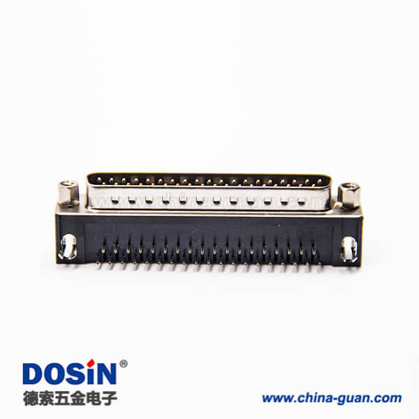 d sub37pin連接器公頭彎式90度帶鉚鎖插板式接PCB板