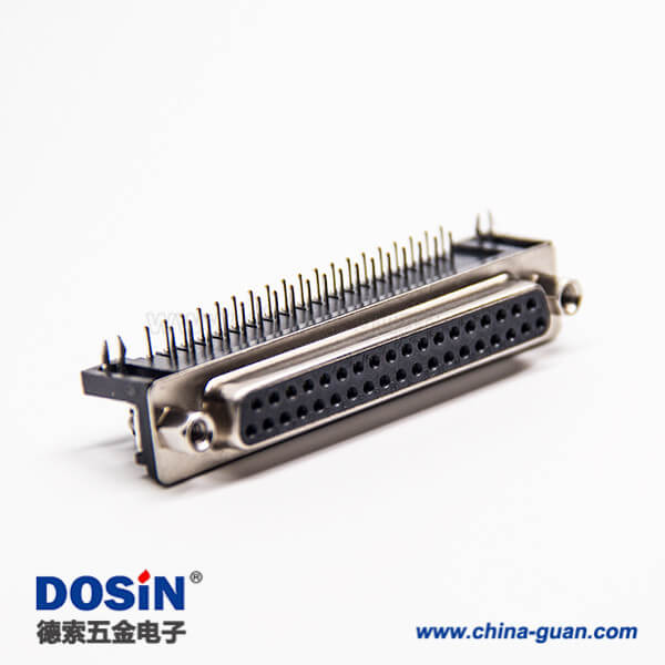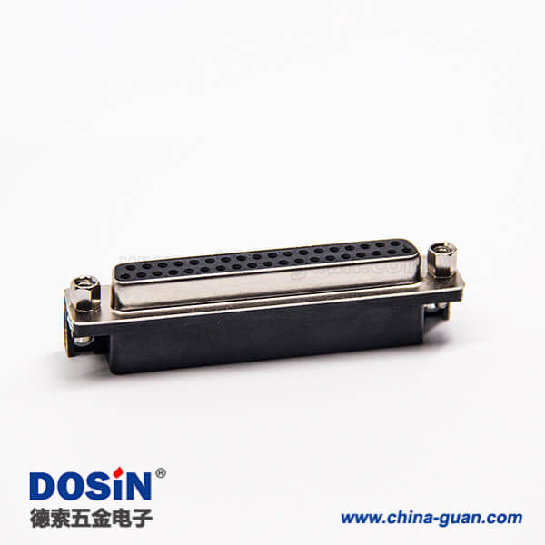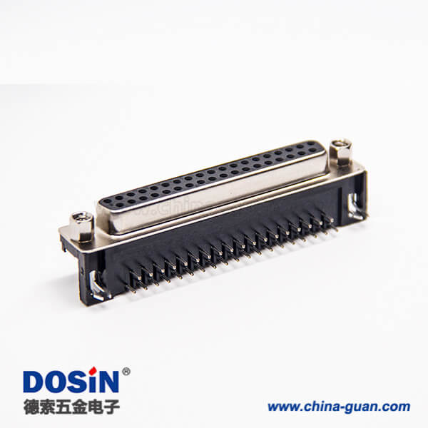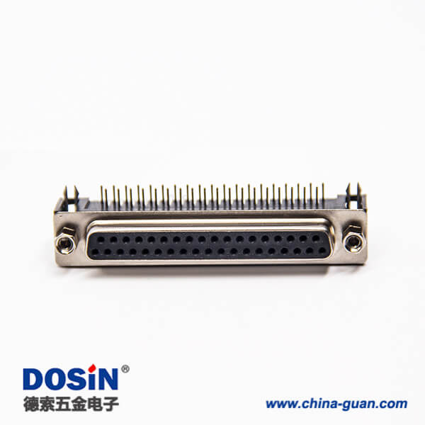37針d-sub連接器母頭彎式180度穿孔式插PCB板黑色膠芯