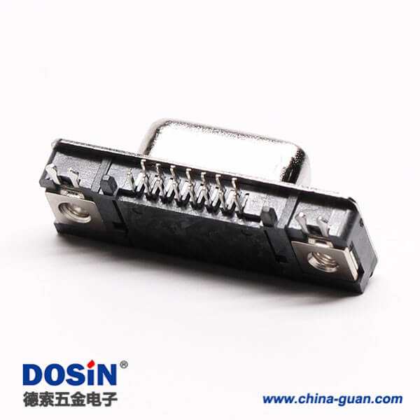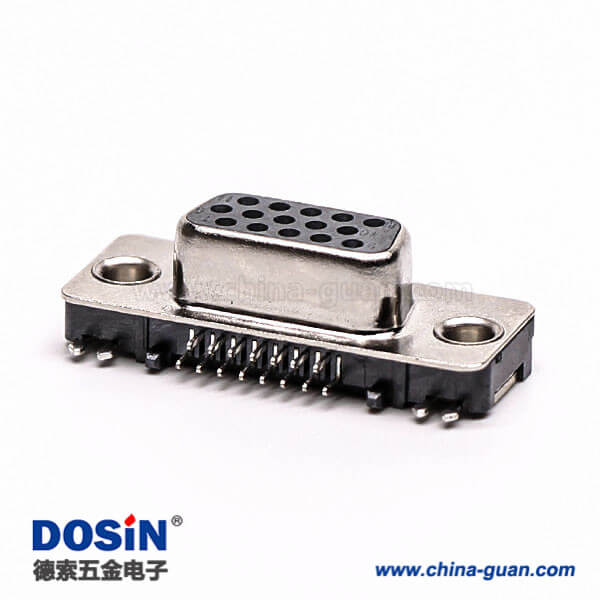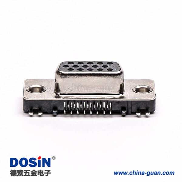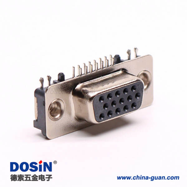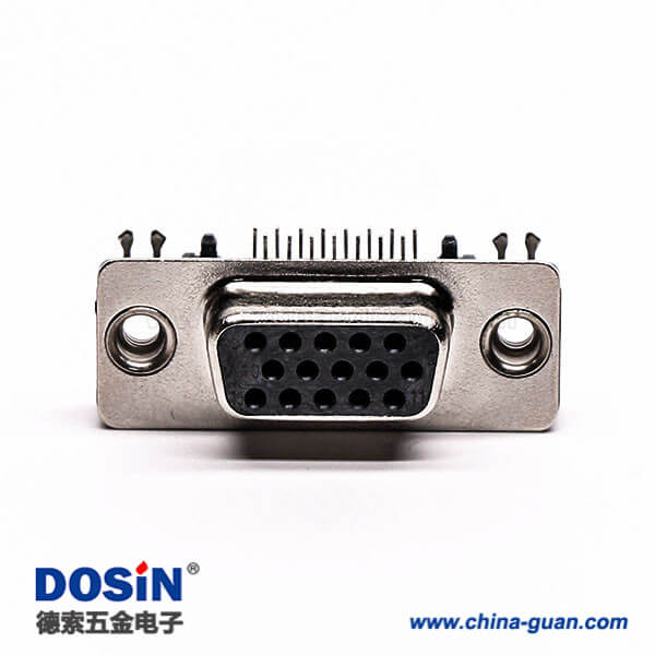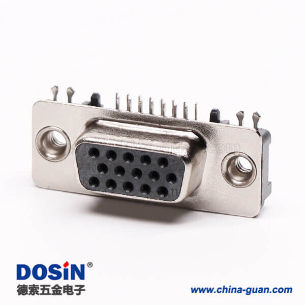 料號:DOSIN-868-0168 標簽:D-sub連接器,高密度,直角彎頭,母頭,15針,鉚鎖,穿孔,插板,黑色膠芯