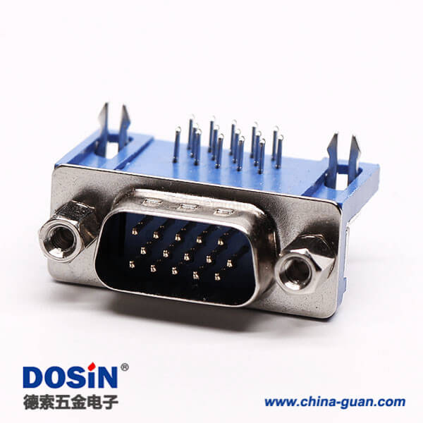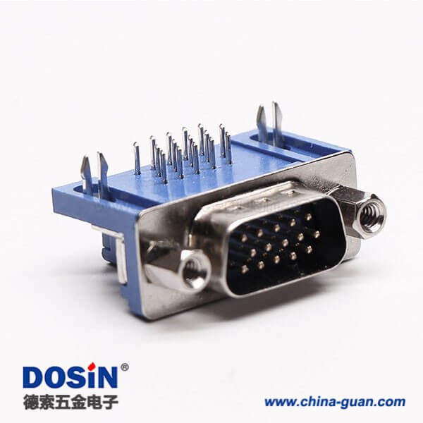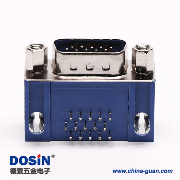 料號:DOSIN-868-0172 標(biāo)簽:D-sub連接器,高密度,彎頭,公頭,15針,鉚鎖,穿孔,插pcb板,藍(lán)色膠芯,三排