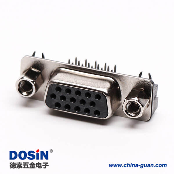 料號:DOSIN-868-0175 標(biāo)簽:D-sub連接器,高密度,直角彎頭,母頭,15針,鉚鎖,穿孔,插pcb板,黑色膠芯