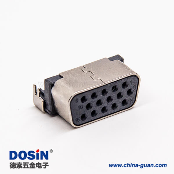 料號:DOSIN-868-0198 標(biāo)簽:D-sub連接器,高密度,90度,15針,母頭,穿孔,PCB板,黑色膠芯