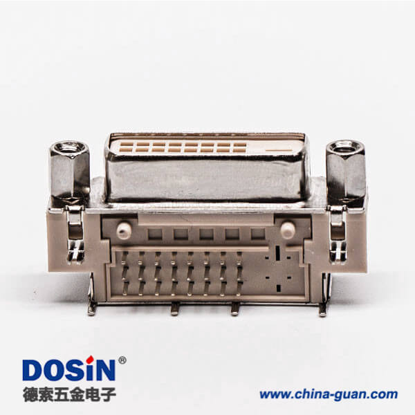 料號:DOSIN-868-0267 標簽:DVI-D 連接器,母頭,彎式,24+1,白色膠芯,穿孔,接PCB板,帶螺母,帶魚叉