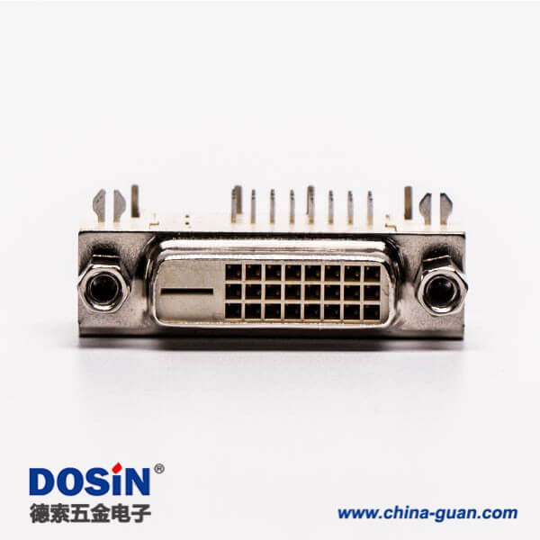 料號:DOSIN-868-0268 標簽:DVI-D 連接器,母頭,彎式,24+1,白色膠芯,帶螺母,帶魚叉,穿孔,接PCB板