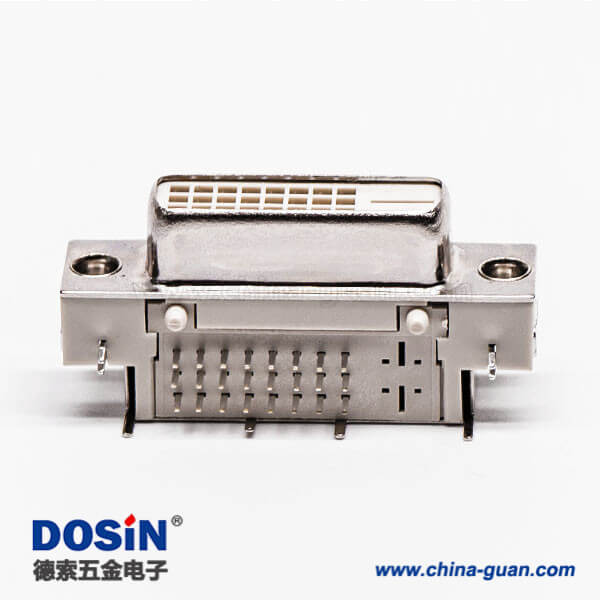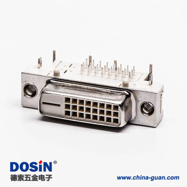 料號:DOSIN-868-0278 標簽:DVI-D 連接器,母頭,彎式,24+1,帶魚叉,插板,接PCB板,帶螺母,白色膠芯