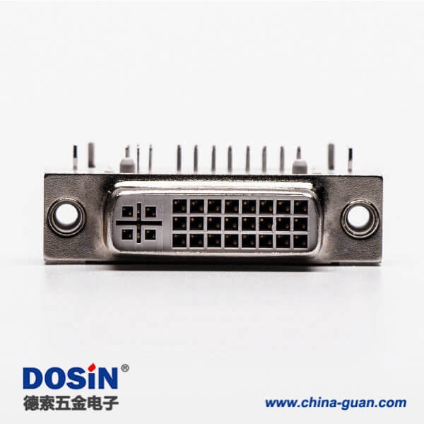 料號:DOSIN-868-0283 標簽:DVI-I 連接器,母頭,帶魚叉腳,彎式,24+5,接PCB板,帶螺母,白色膠芯