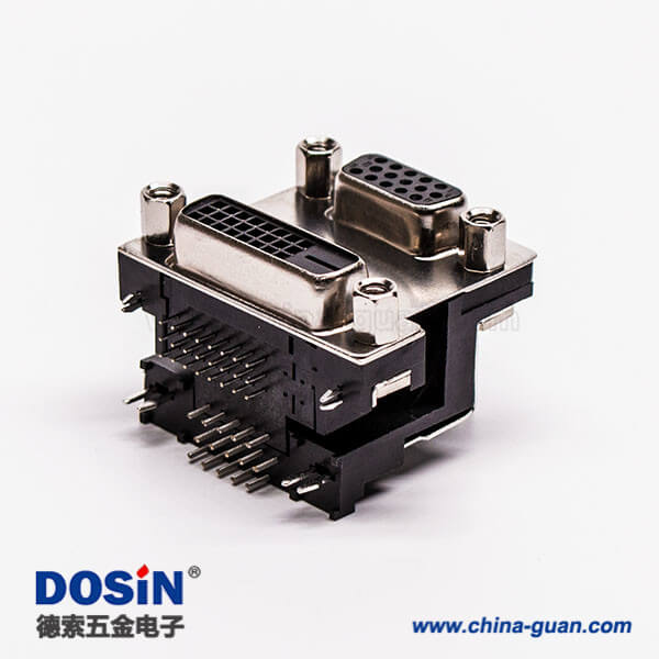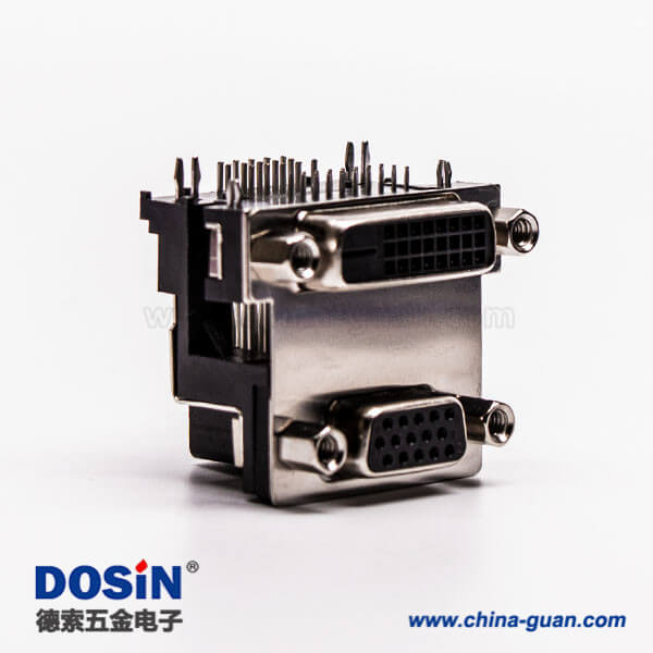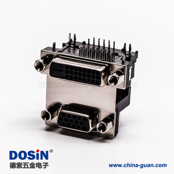 d-sub和dvi雙端口連接器母頭彎式無控孔5.48mm