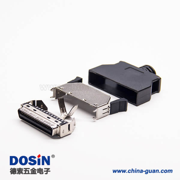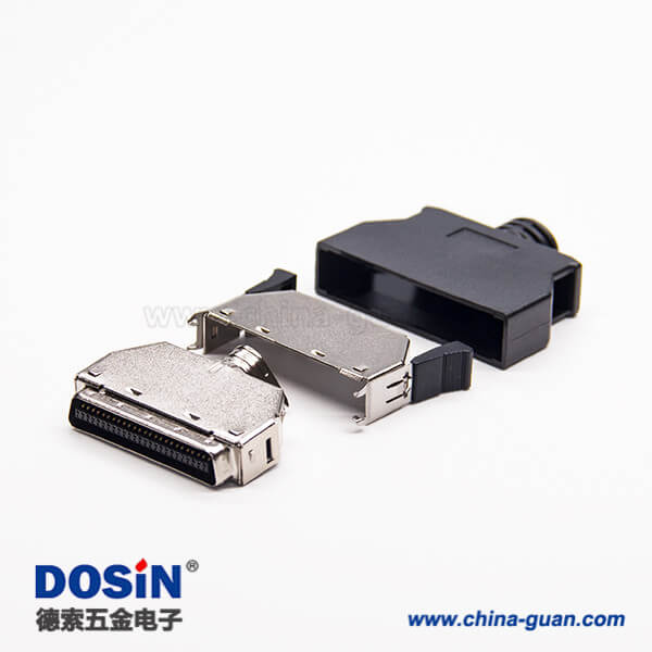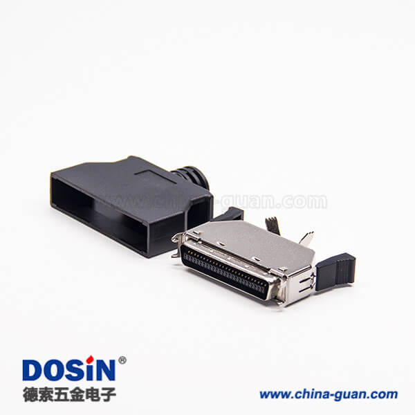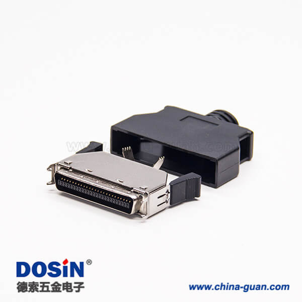 50pin按鍵式SCSI連接器黑色外殼直式180度按鍵式接線(xiàn)焊接