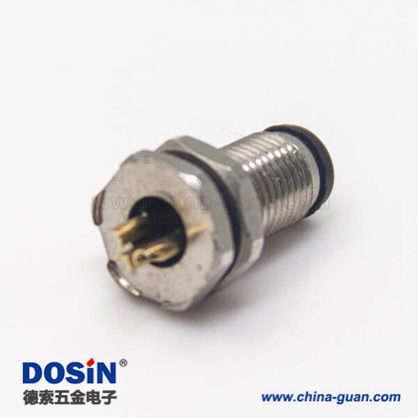 料號:DOSIN-868-0501 標(biāo)簽:M5, 3芯, 板端插座, 公頭, 直式,焊接, 前鎖穿墻,接面板 / 線材