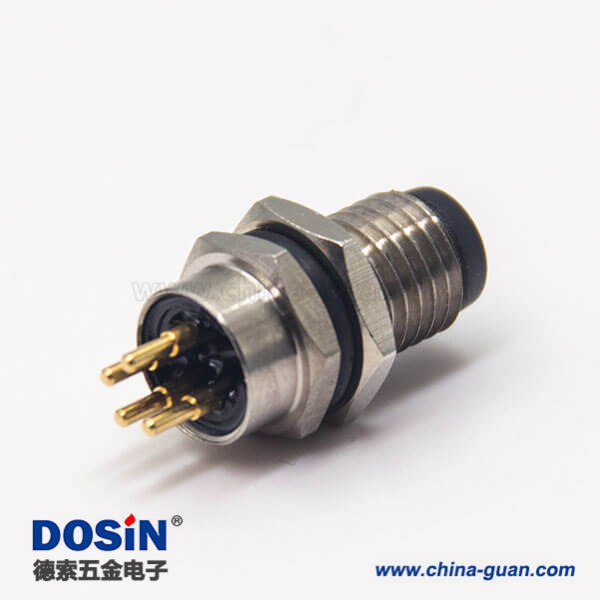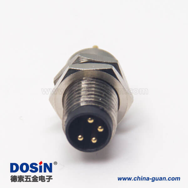 料號:DOSIN-868-0520 標簽:M8,4芯,板端插座,公頭,直式,前鎖板,面板安裝,插PCB板