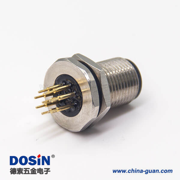 M12,板端插座,A編碼,8芯,直式,公頭,前鎖板,面板安裝,插PCB板安裝
