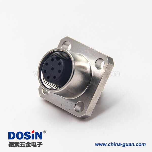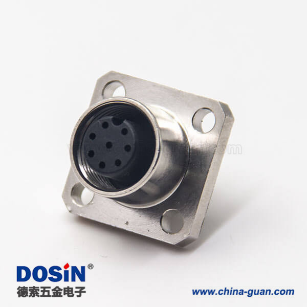 料號:DOSIN-868-0581 標簽:M12,板端插座,A編碼,8芯,直式,母頭,4孔法蘭,面板安裝,焊線
