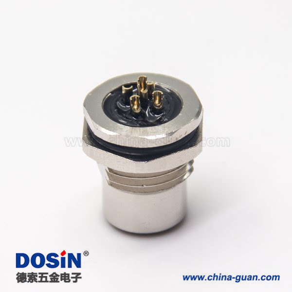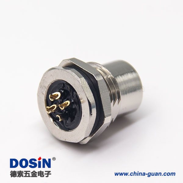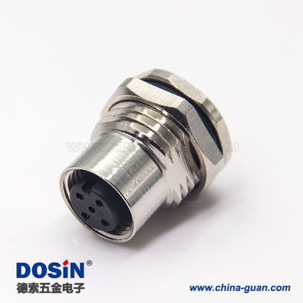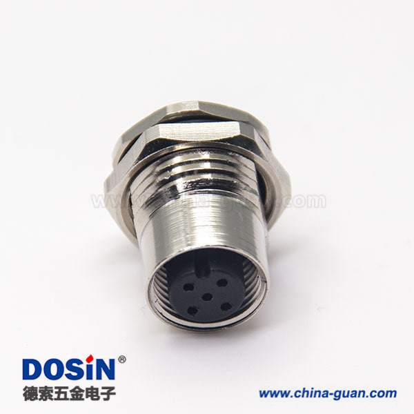 料號:DOSIN-868-0590 標簽:M12板端插座,A編碼,5芯,直式,母頭,焊線,前鎖板,面板安裝