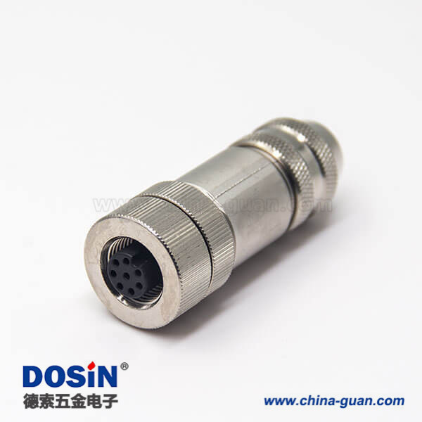 料號:DOSIN-868-0595 標簽:M12,組裝接頭,D編碼,8芯,直式,母頭,接線,螺絲鎖線,帶屏蔽