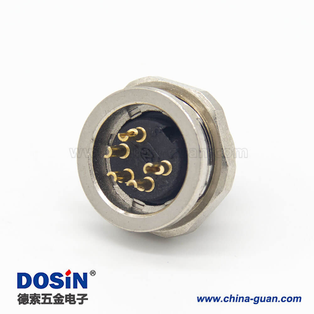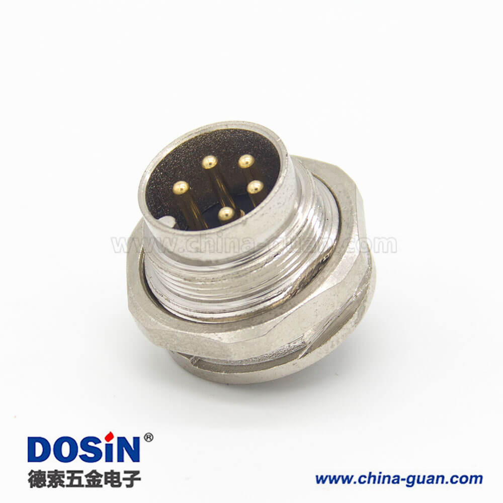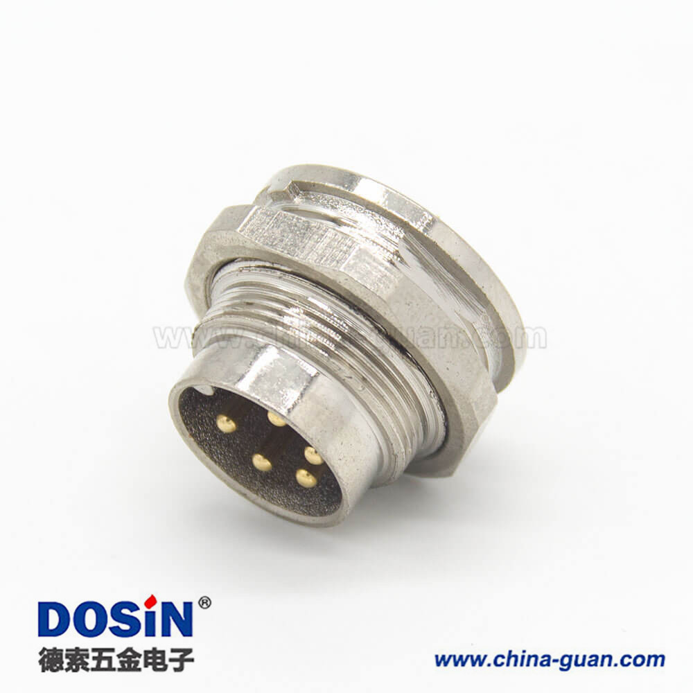 M16連接器5芯直式公插座前鎖穿墻面板安裝焊線