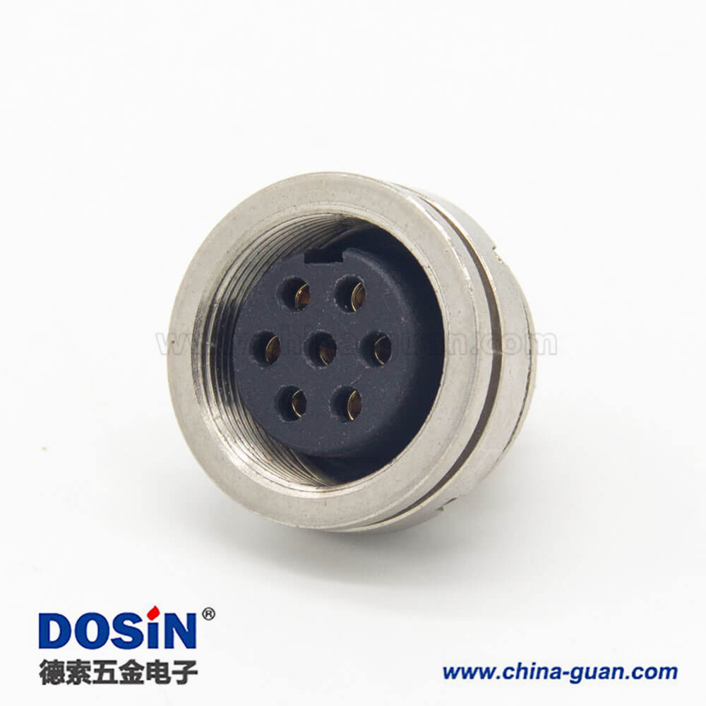 M系列連接器M16 7芯直式母插座后鎖穿墻面板安裝焊線