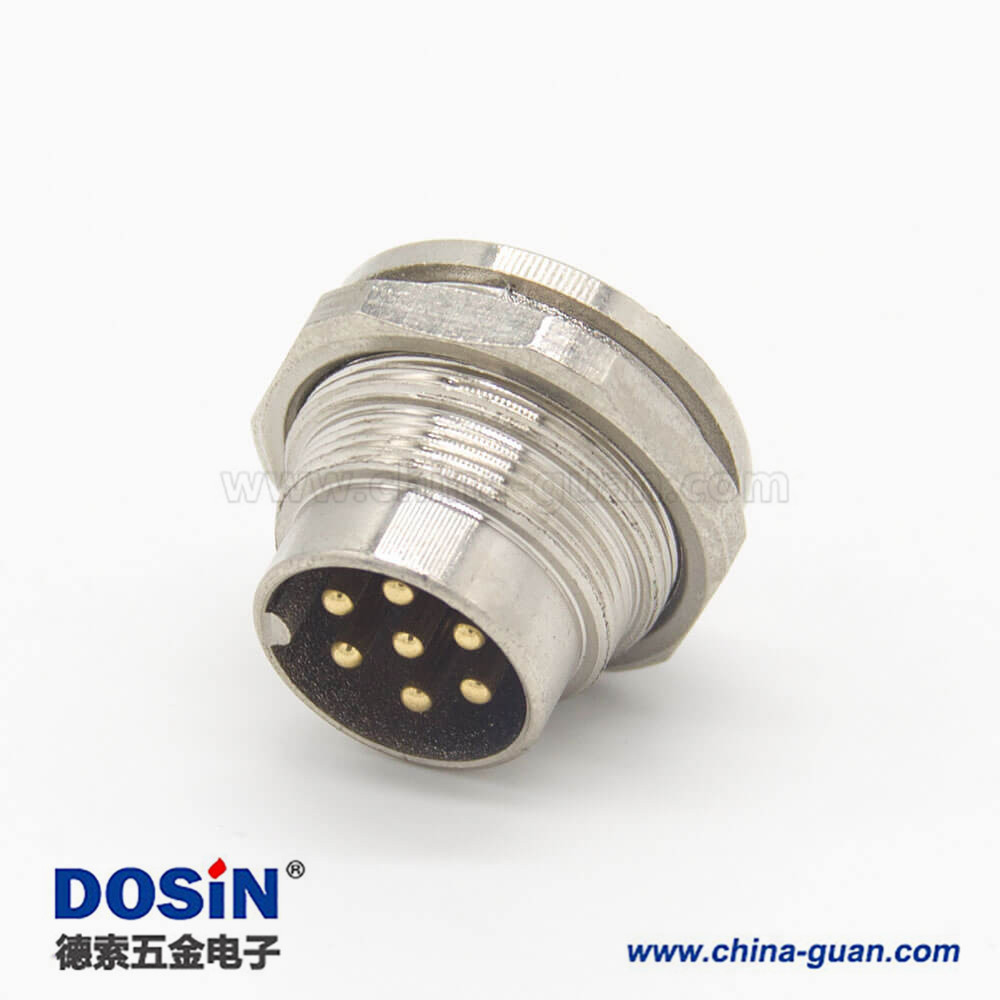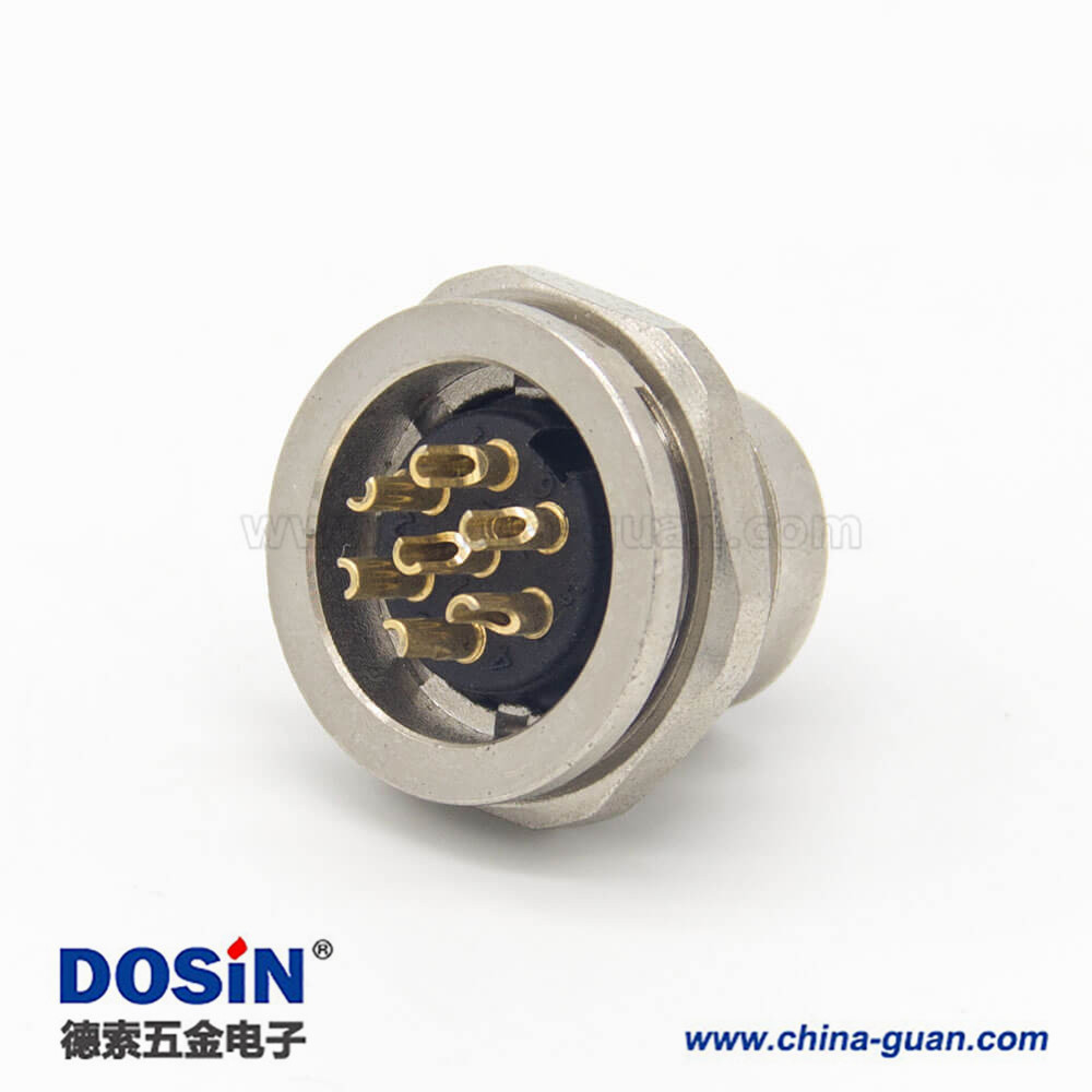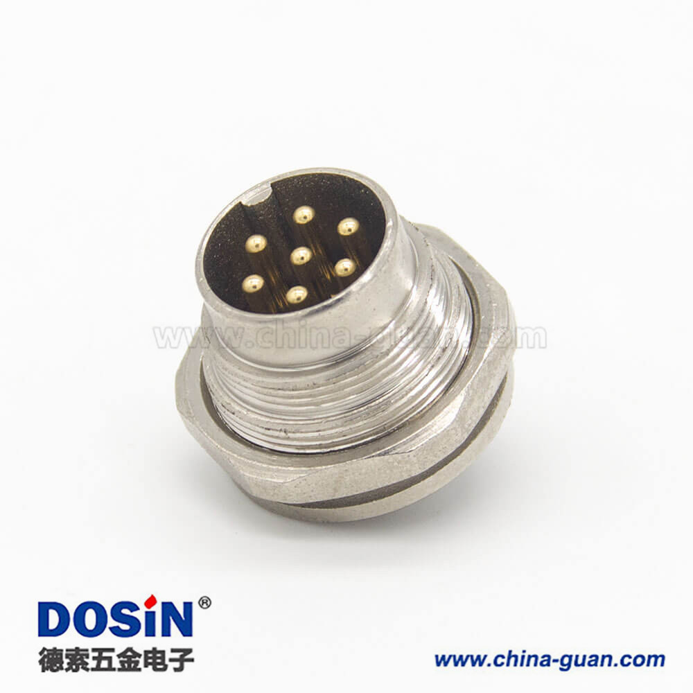 M16系列連接器7芯直式公插座前鎖穿墻面板安裝焊線