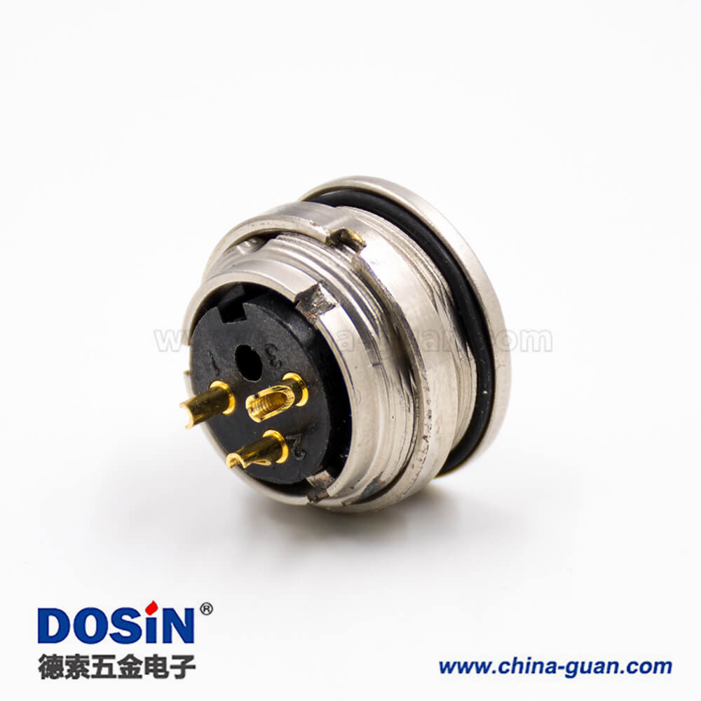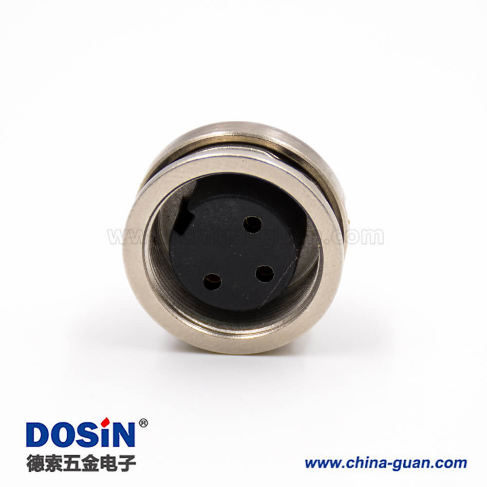 M16穿墻3芯母頭板端插座直式A扣后鎖穿墻焊杯接線連接器