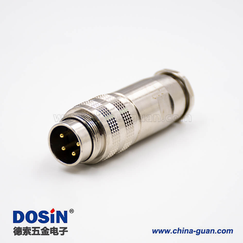 m16組裝式4芯公頭180°組裝接頭全金屬接線連接器帶屏蔽