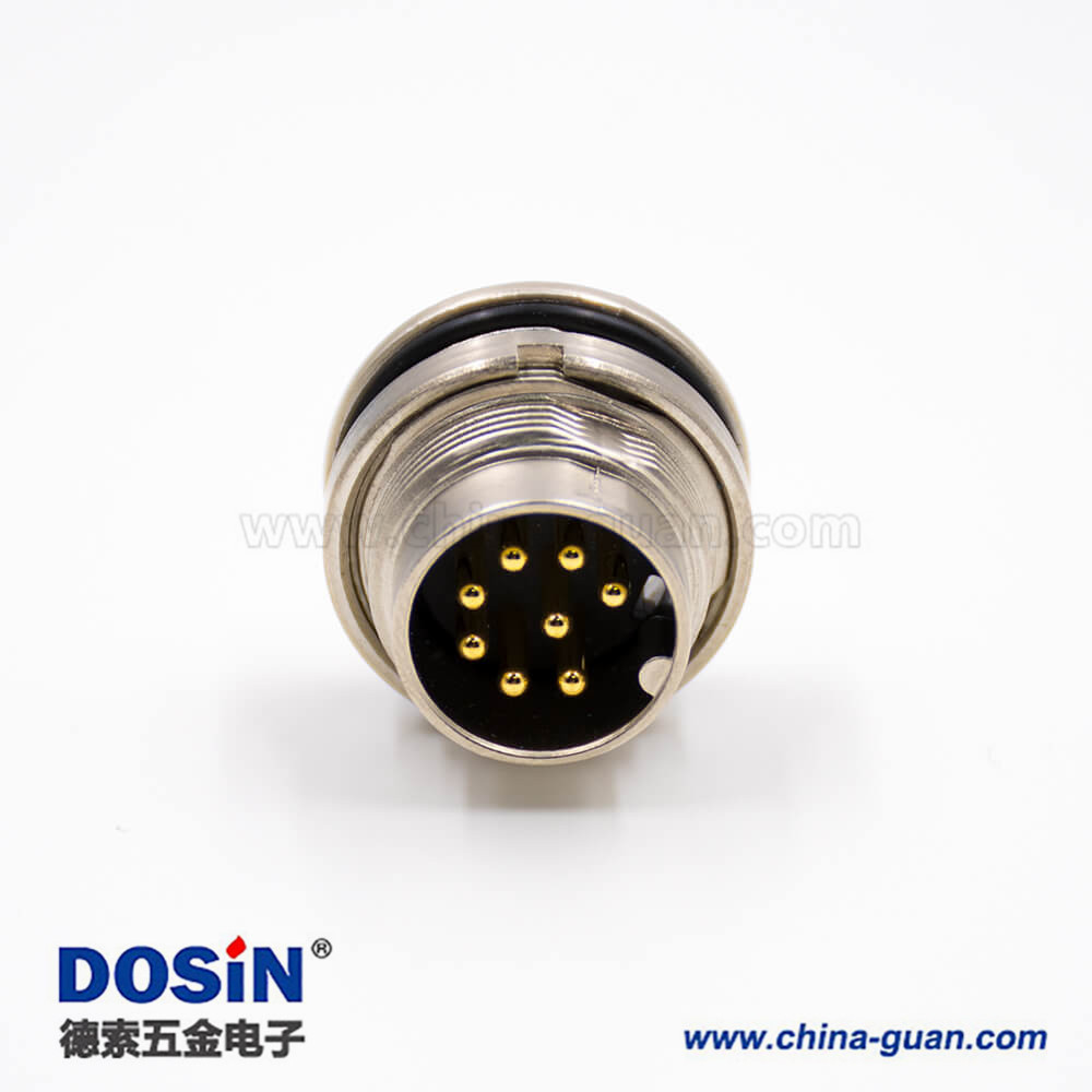 插座公頭M16公頭8芯A扣直式板端插座連接器焊杯接線前鎖穿墻