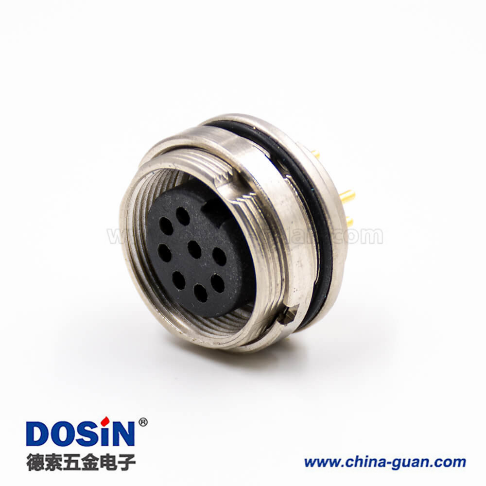 M16母頭8芯前裝面板頭A扣直式板端插座PCB板焊接接線連接器