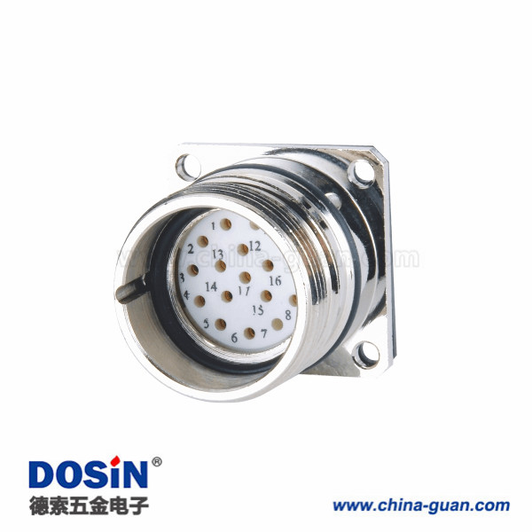 料號:?DOSIN-868-0705 標簽:M23, 板端座子, 17芯, 母, 直, 接面板, 4孔法蘭