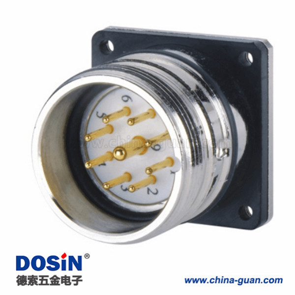 料號:?DOSIN-868-0706 標簽:M23, 板端座子, 9芯, 公, 直, 接面板, 4孔法蘭