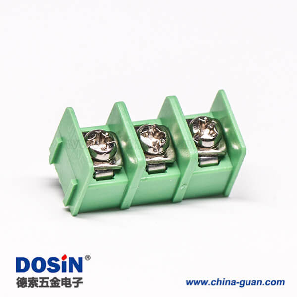 標(biāo)簽:柵欄式端子,綠色,直式,3芯,300V,25A,10.00mm,穿孔式,焊接