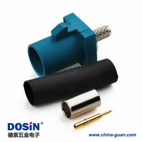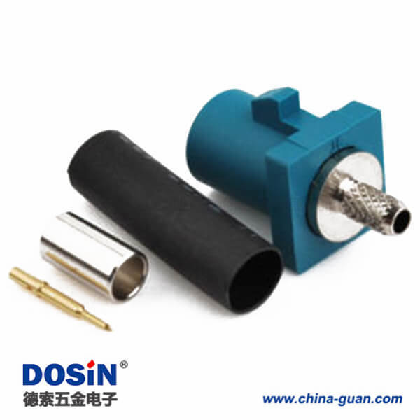 Fakra SMB連接器Z型公頭水藍(lán)色壓接焊接汽車天線接線RG316 RG174