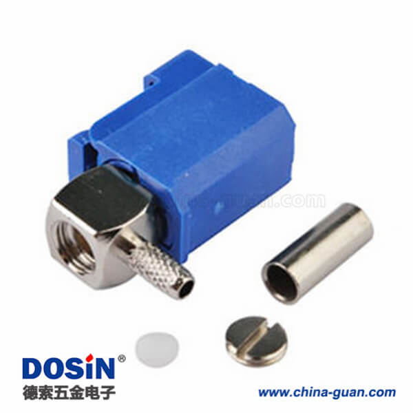 Fakra連接器母頭塑料外殼C型彎式藍色壓接焊接接線RG174 RG316連接器