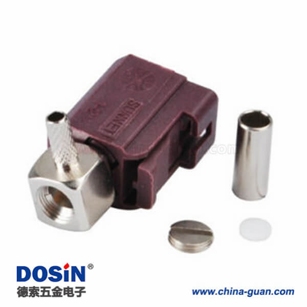 標(biāo)簽:RF連接器,Fakra連接器,母,彎式,50歐姆,壓接,接線,RG174,RG316,黃銅,鍍鎳
