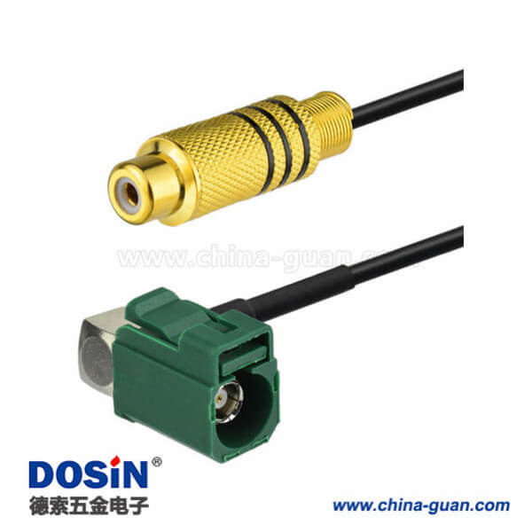 汽車天線線束Fakra E型母頭轉(zhuǎn)RCA母頭彎式視頻連接器接線1米