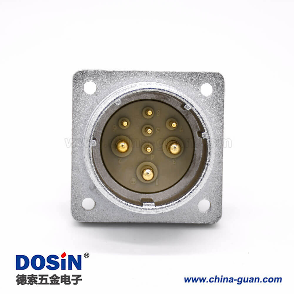 公頭連接器P32 8芯直式插座方形四孔法蘭安裝焊杯接線