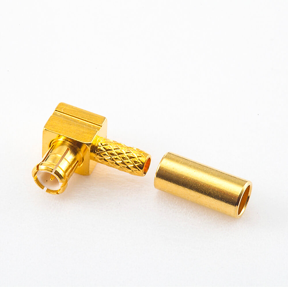 MCX同軸線焊接接頭公頭彎式銅鍍金50Ω