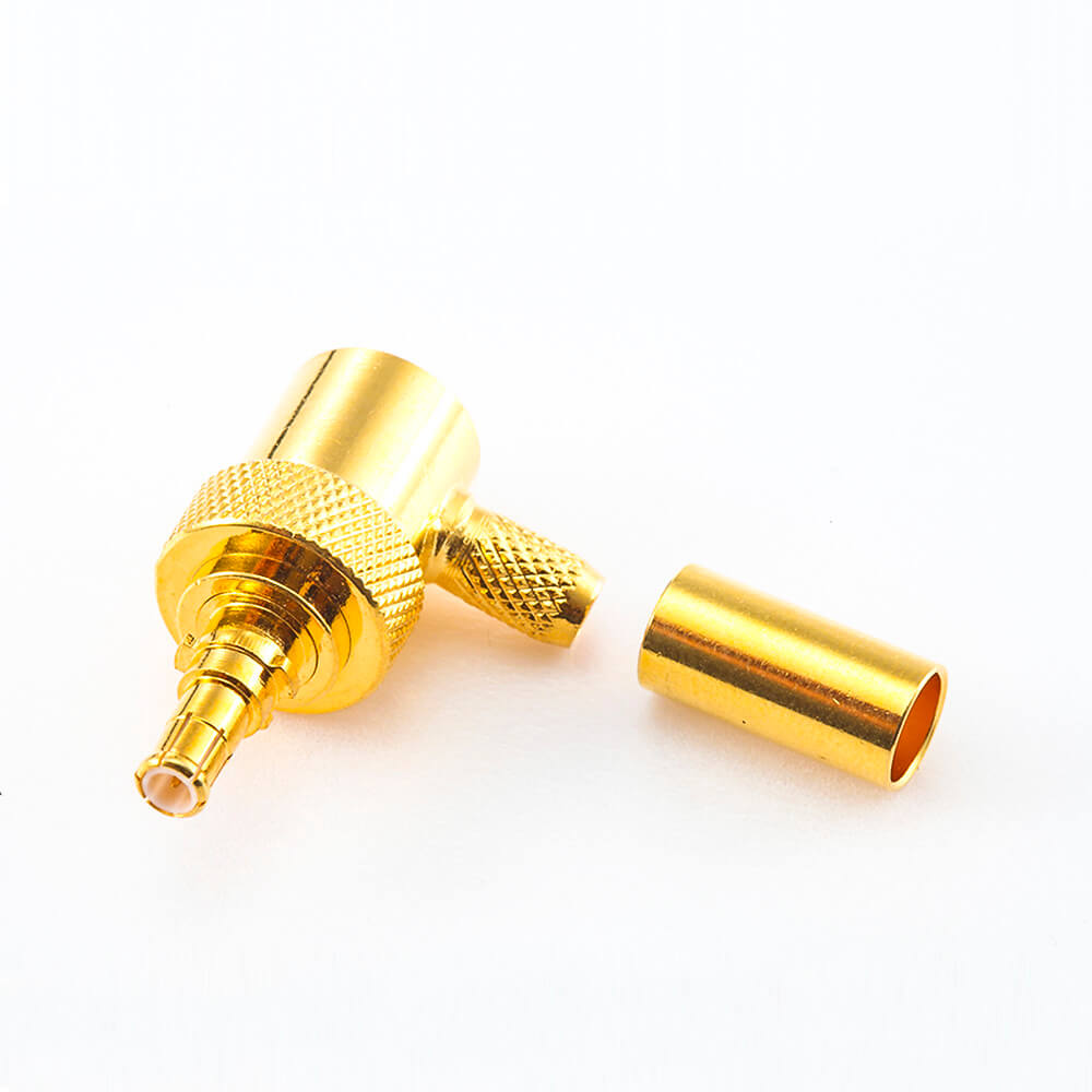 MCX彎公頭壓接式接頭銅鍍金50ΩΩ