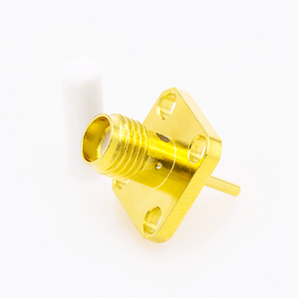 面板安裝SMA連接器母頭直式4孔法蘭焊板用于PCB安裝