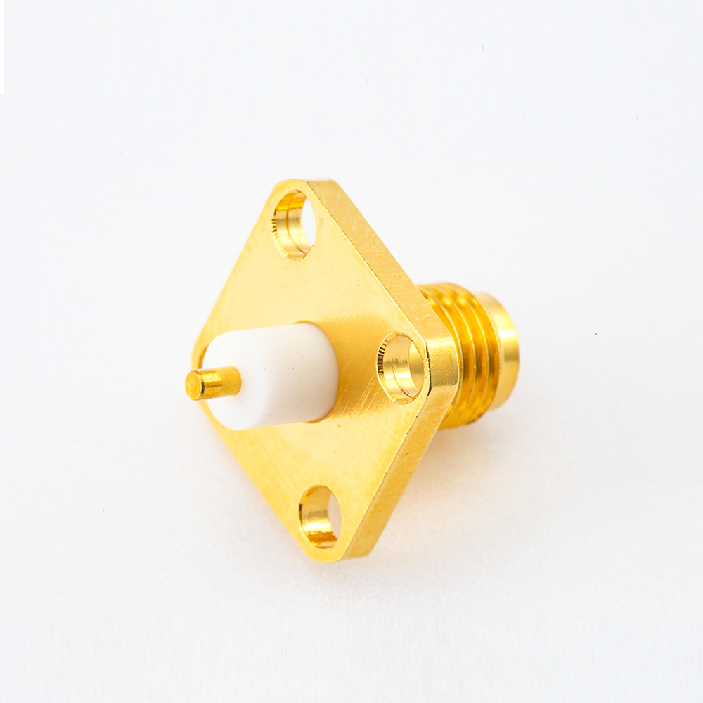50歐姆SMA連接器PCB安裝母頭形直式面板安裝焊板4孔法蘭