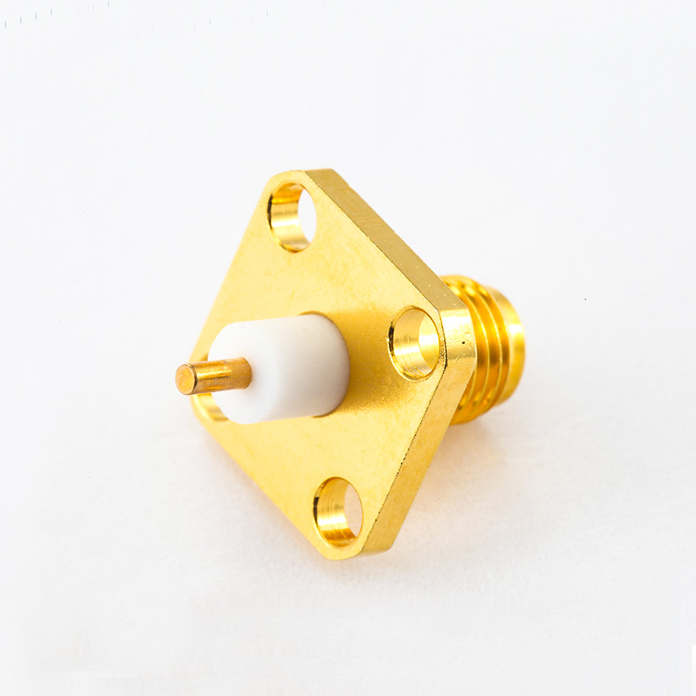 SMA母頭直式連接器4孔法蘭PCB安裝焊板板