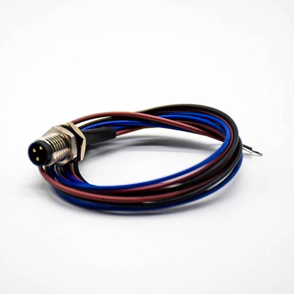 料號:EB-400-1268 標簽:M8,板端插座,3芯,直式,公頭板端,焊線,后鎖板,防水,帶屏蔽,0.2M