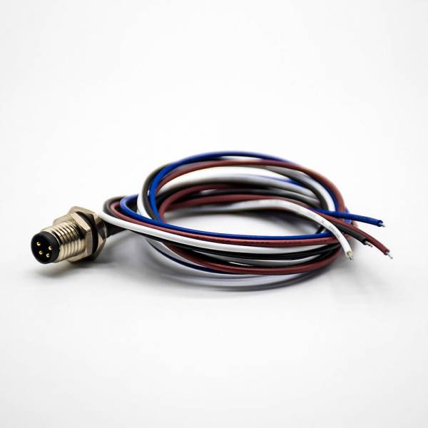 料號:EB-400-1269 標簽:M8,板端插座,4芯,直式,公頭板端,焊線,后鎖板,防水,帶屏蔽,0.2M