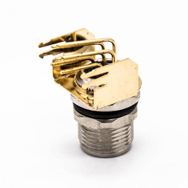 M8傳感器連接器6芯插座A扣彎式母頭PCB板安裝前鎖板帶鍍金支架