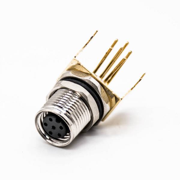 標(biāo)簽:M8板端插座, 6芯, 母頭, A扣, 彎式, PCB板安裝, 插孔, 帶鍍金支架, 前鎖板