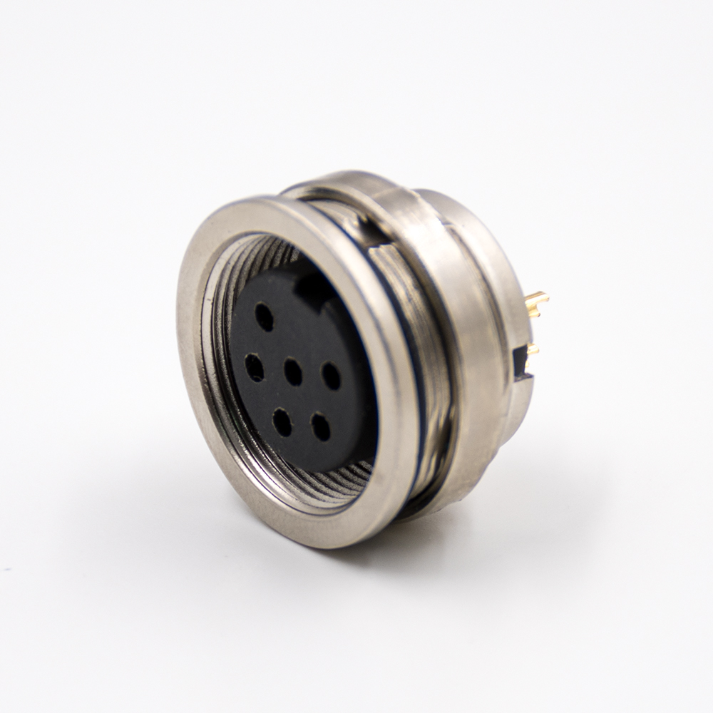 6芯插座M16板端插座A扣母頭直式后鎖板接線傳感器連接器
