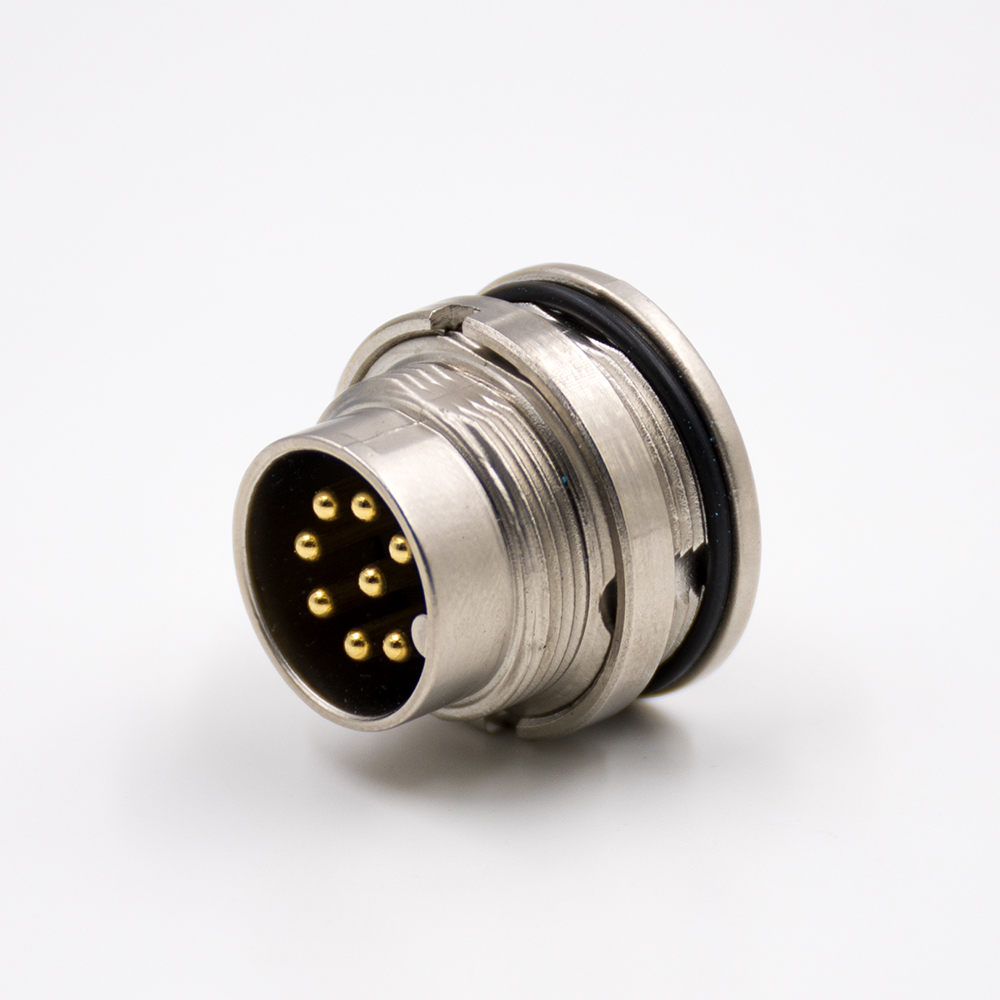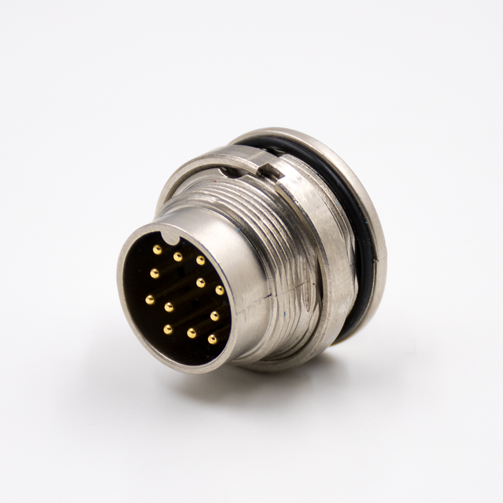 M16穿墻端插座A扣12芯公頭直式前鎖板接PCB板傳感器連接器