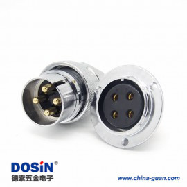 航空插頭反裝GX40 直式4芯電纜反裝公插頭圓盤母插座