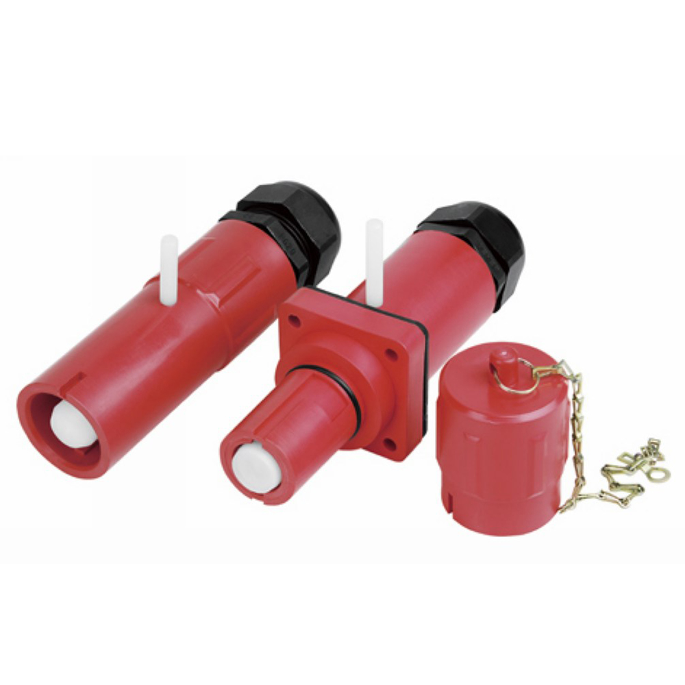 牽引電機連接器YGC1芯直式螺紋連接冷壓接IP67400A紅色配線規(guī)格95公母對接帶防塵蓋