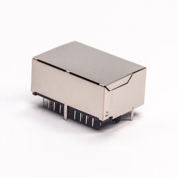 rj45網絡雙通彎式90度帶屏蔽座子穿孔式接PCB板