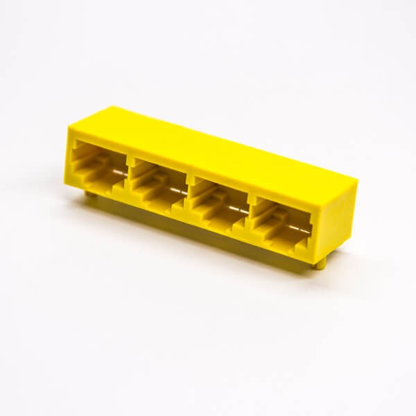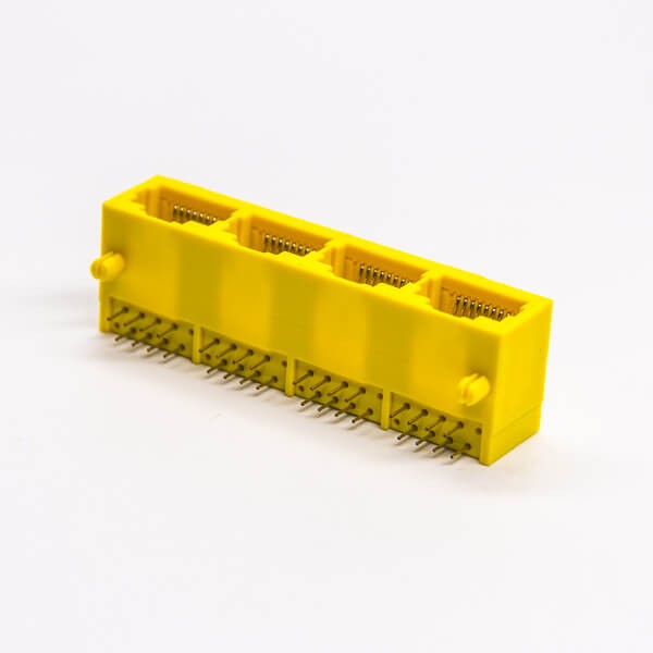 非屏蔽rj45座黃色全塑4端口穿孔式接PCB板帶燈