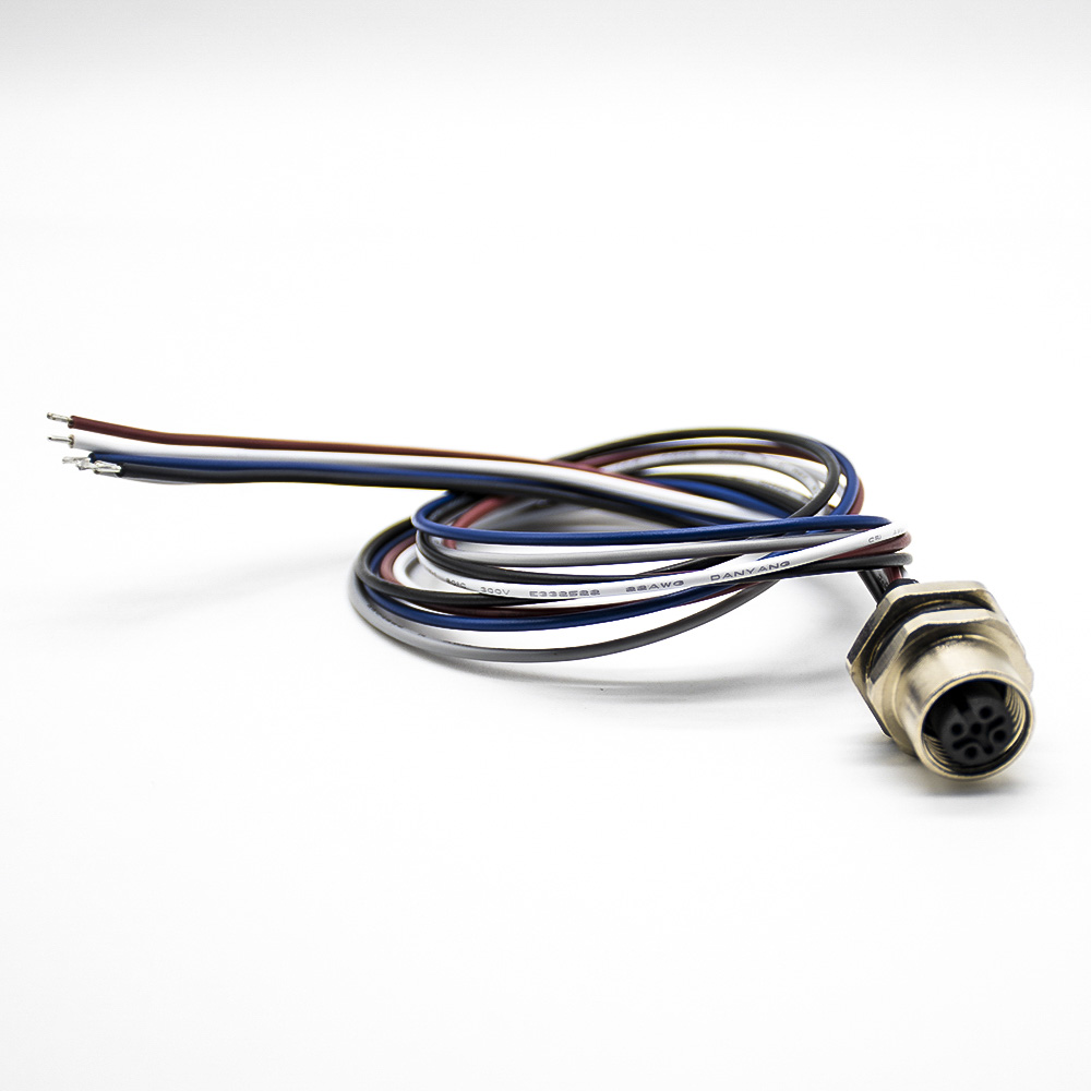 料號(hào):M12-05-A-S-2-S-B-W 標(biāo)簽:M12,板端插座,A扣,5芯,直式,母頭板端,焊線,后鎖板,防水,帶屏蔽,0.2M
