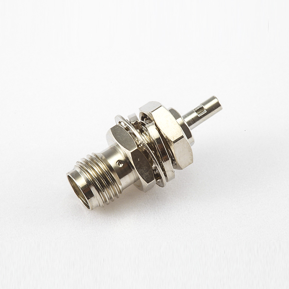 SMA連接器母頭直式面板安裝前鎖穿墻鎳鍍層開(kāi)天窗焊接式用于1.13MM接線